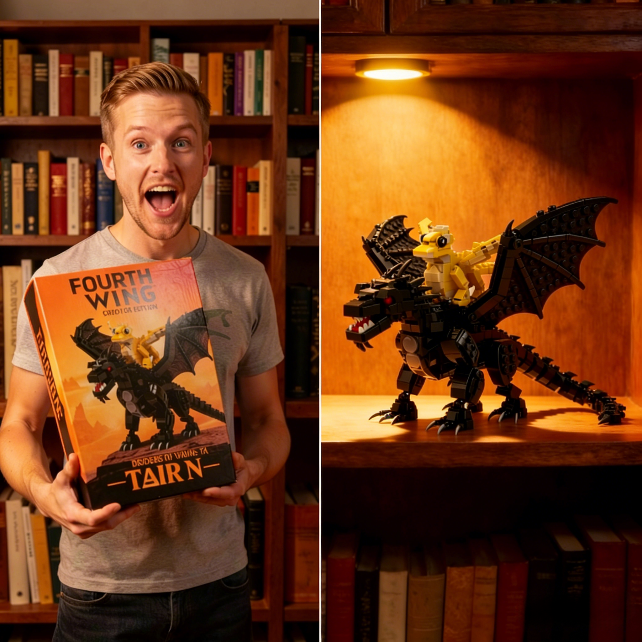 This Dual Dragon Collector Brick Edition features the legendary Tairn, the mighty black dragon of unmatched power, carrying Andarna, the rare golden dragon whose destiny is just beginning. ✨🐲
